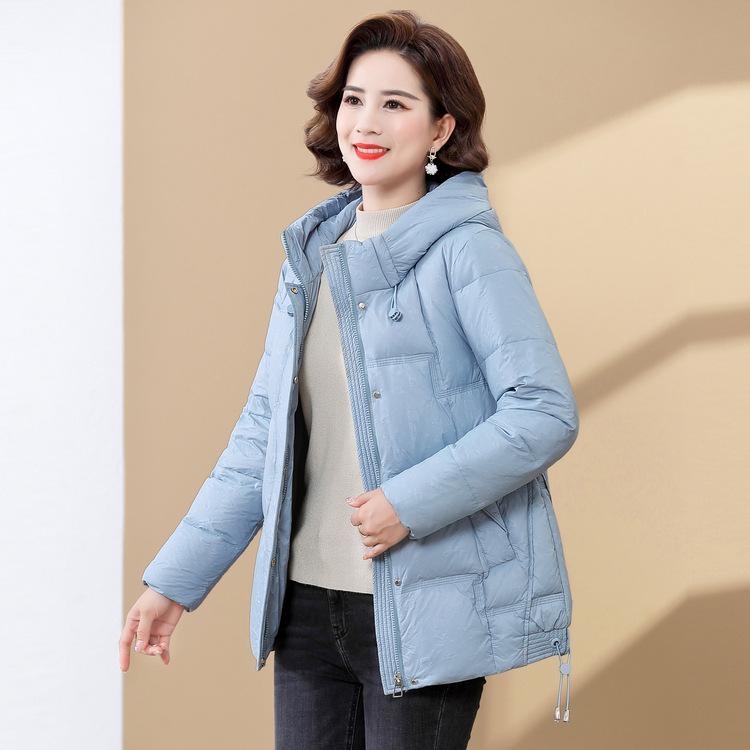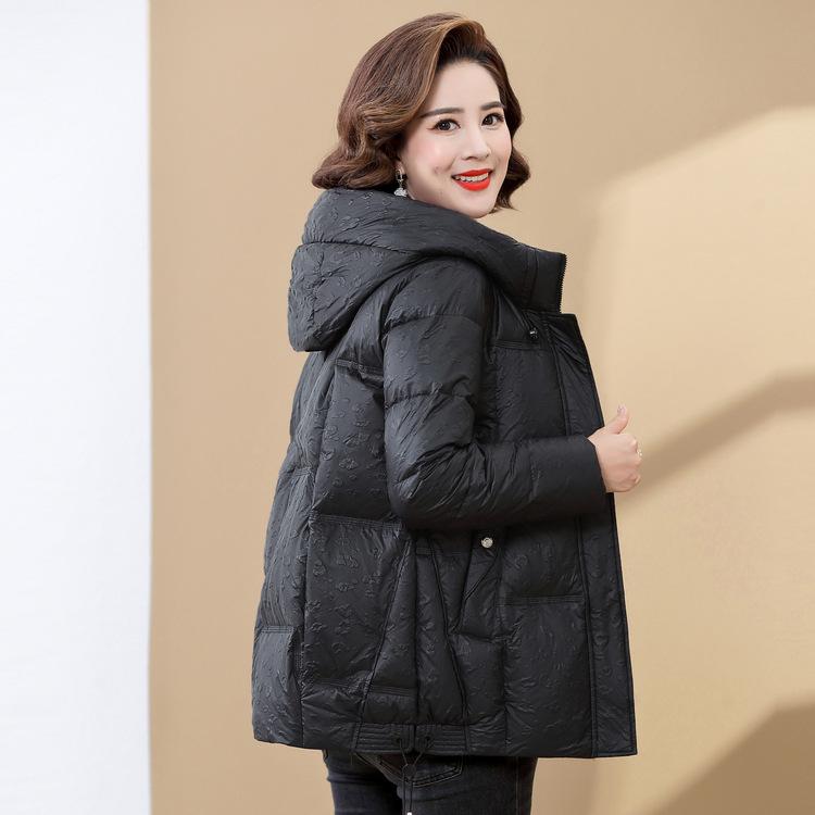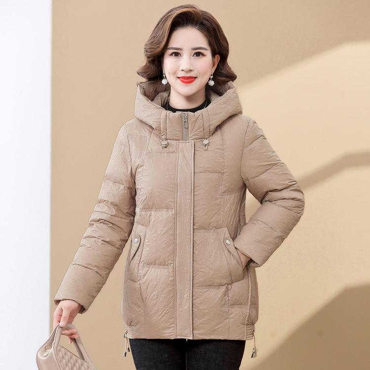 Новая зимняя пуховая куртка для мамы, модная одежда для женщин среднего и пожилого возраста 40 лет 50, модная куртка с капюшоном на белом утином пуху