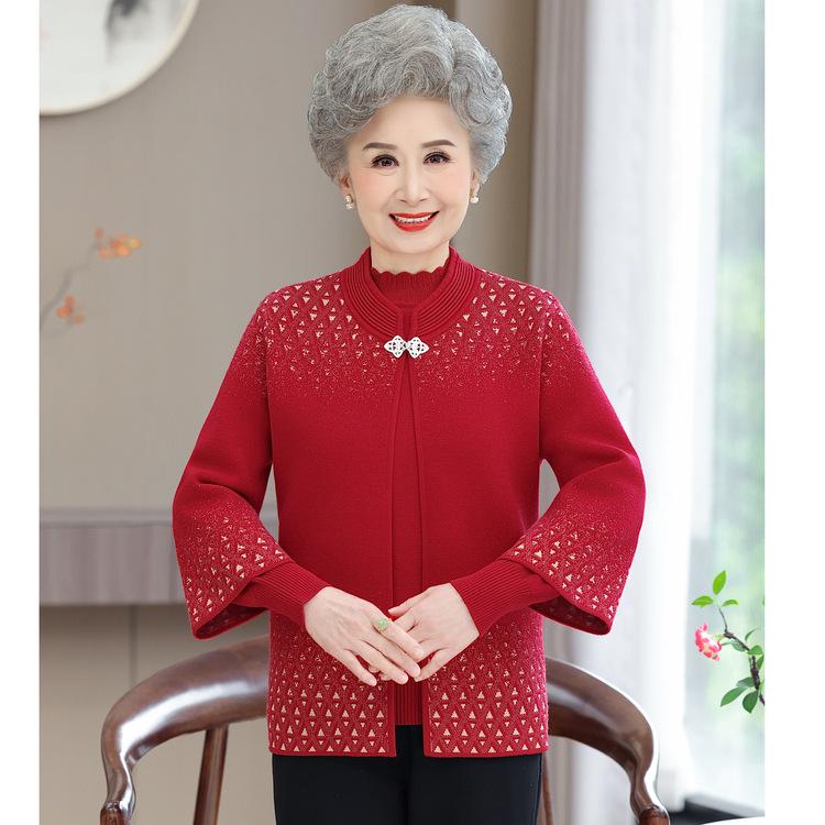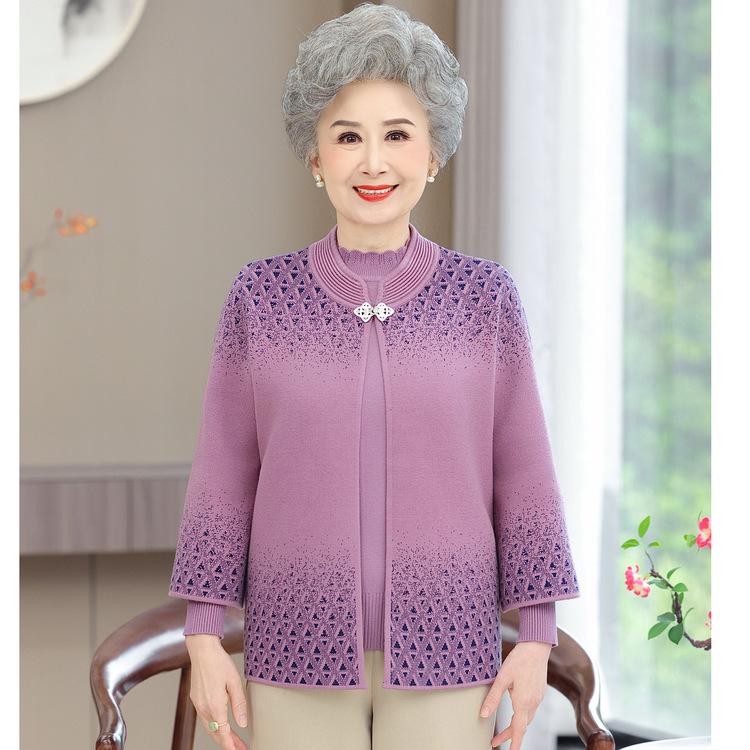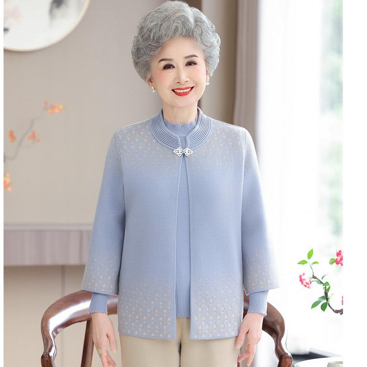 Женский кардиган-пальто для женщин среднего и пожилого возраста, осенне-зимний свитер, костюм-двойка из новой вязаной ткани для мамы на весну и осень