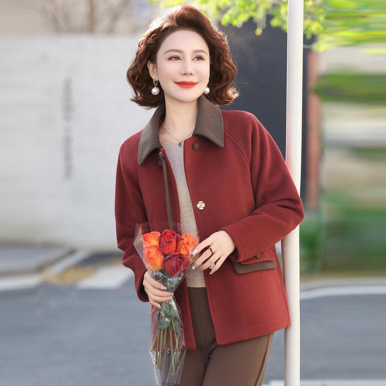 Осеннее короткое шерстяное пальто для женщин среднего и пожилого возраста, кардиган для мамы среднего возраста, осенне-зимний новый модный топ большого размера