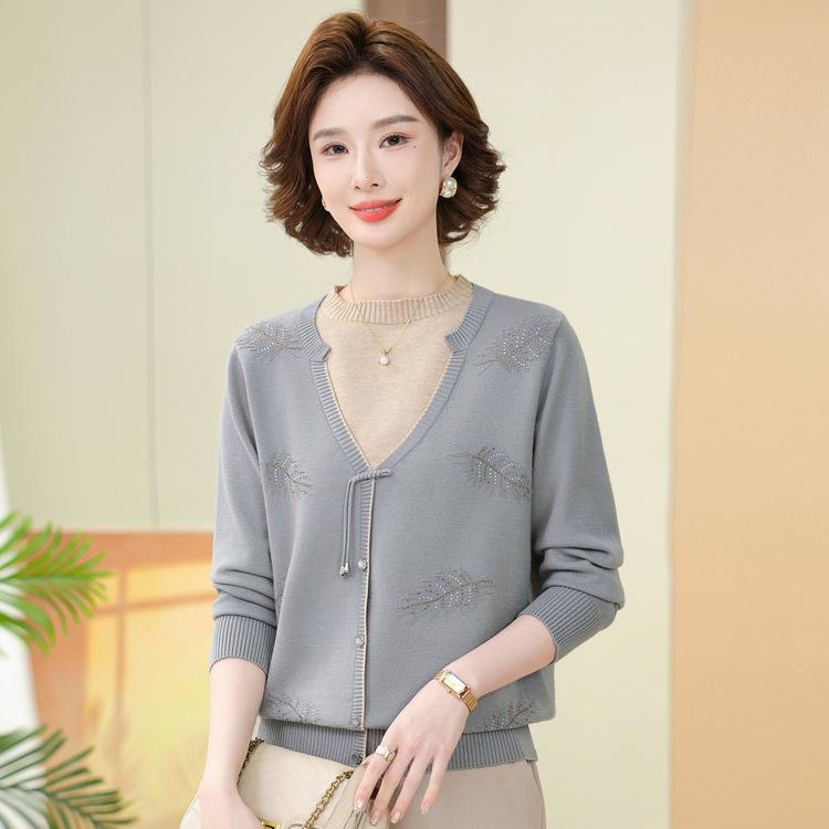 Женская одежда на весну и осень Тонкие рубашки для мам среднего возраста Весеннее платье Трикотажная базовая рубашка в стиле «два в одном» Модные топы