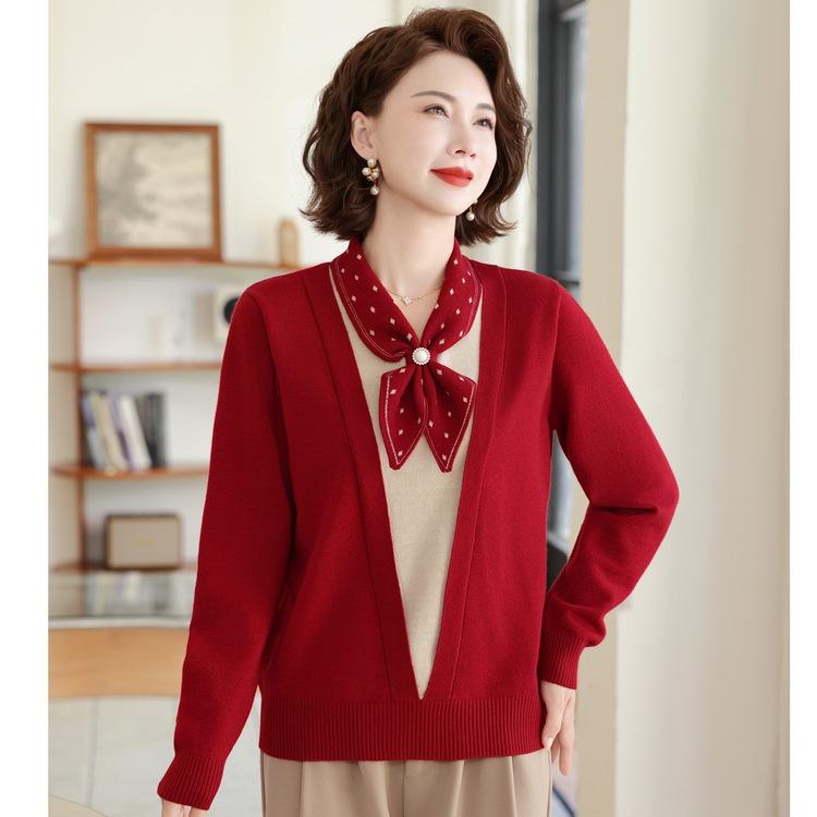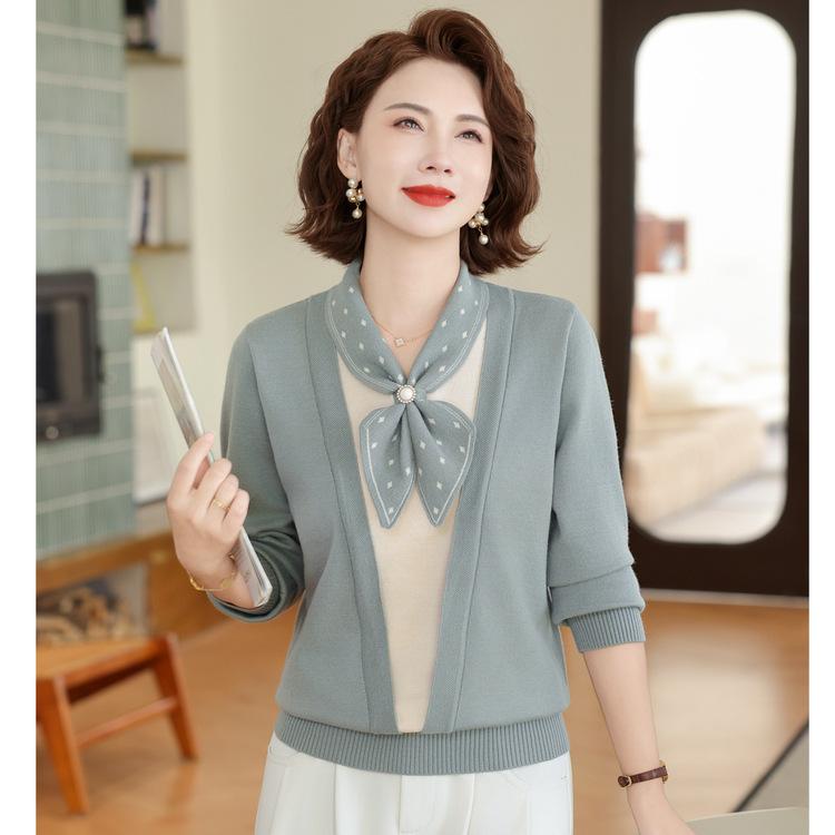 Осенне-зимняя базовая рубашка для людей среднего и пожилого возраста, осенняя одежда для мамы, новый вязаный свитер, топ, свитер на бретелях для женщин среднего возраста