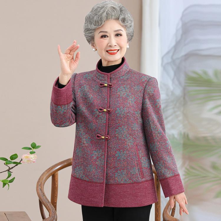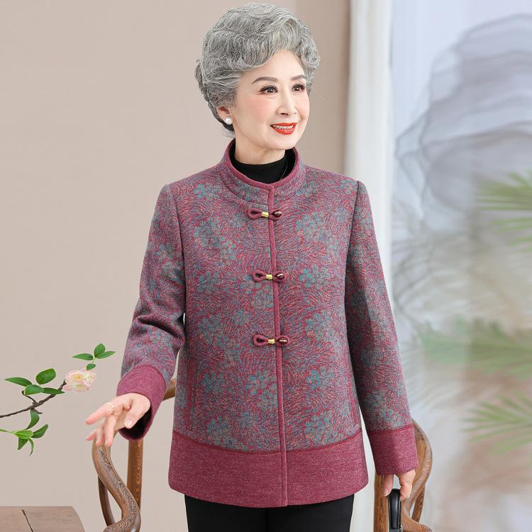 Пальто бабушки Осень и Зима Одежда для мамы Пожилая женщина Воротник-стойка Топ В пожилом возрасте Пальто Одежда