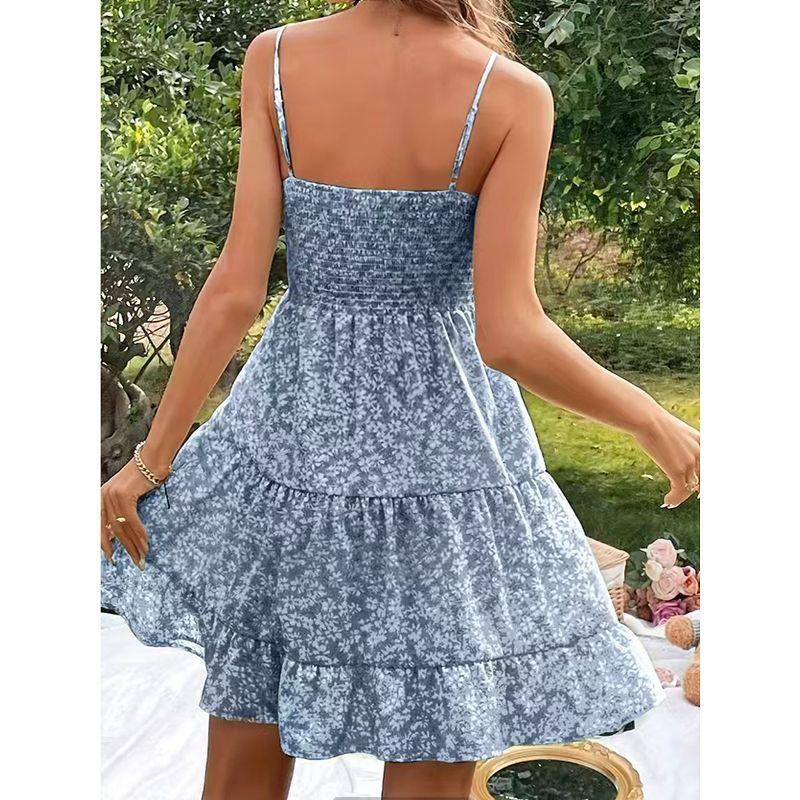 Французский стиль Милое Маленькое Платье-слинг с Цветочным Воротником, Облегающее Талию, Высококачественное, Сказочное, в Стиле Первой Любви, с Отделкой Рюшами по Подолу