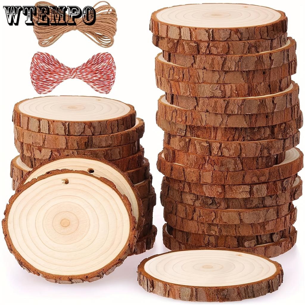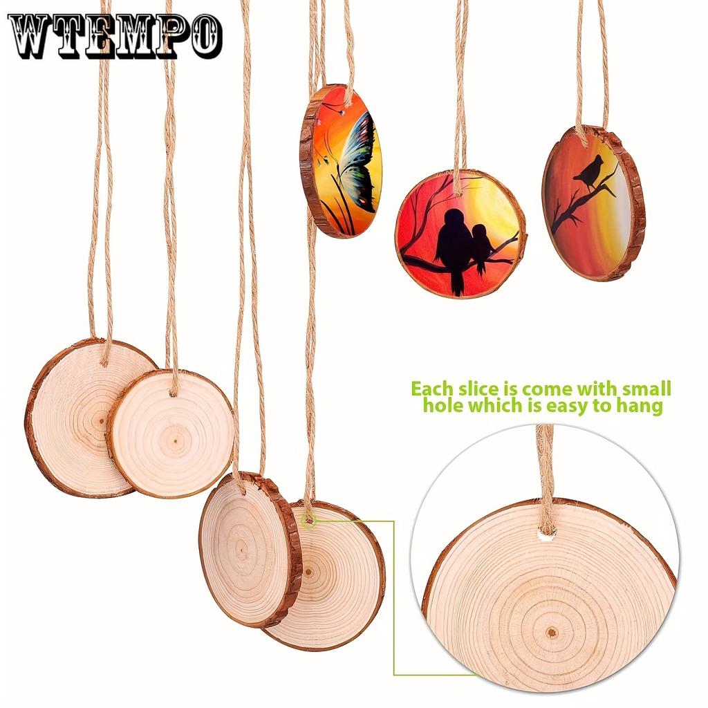 30pcs Wood Slices 2.4"-2.8" Wood Rounds with Pre-drilled Hole and Twine, Wood Slices for Painting DIY Crafts Christmas Ornaments Party Wedding Decor