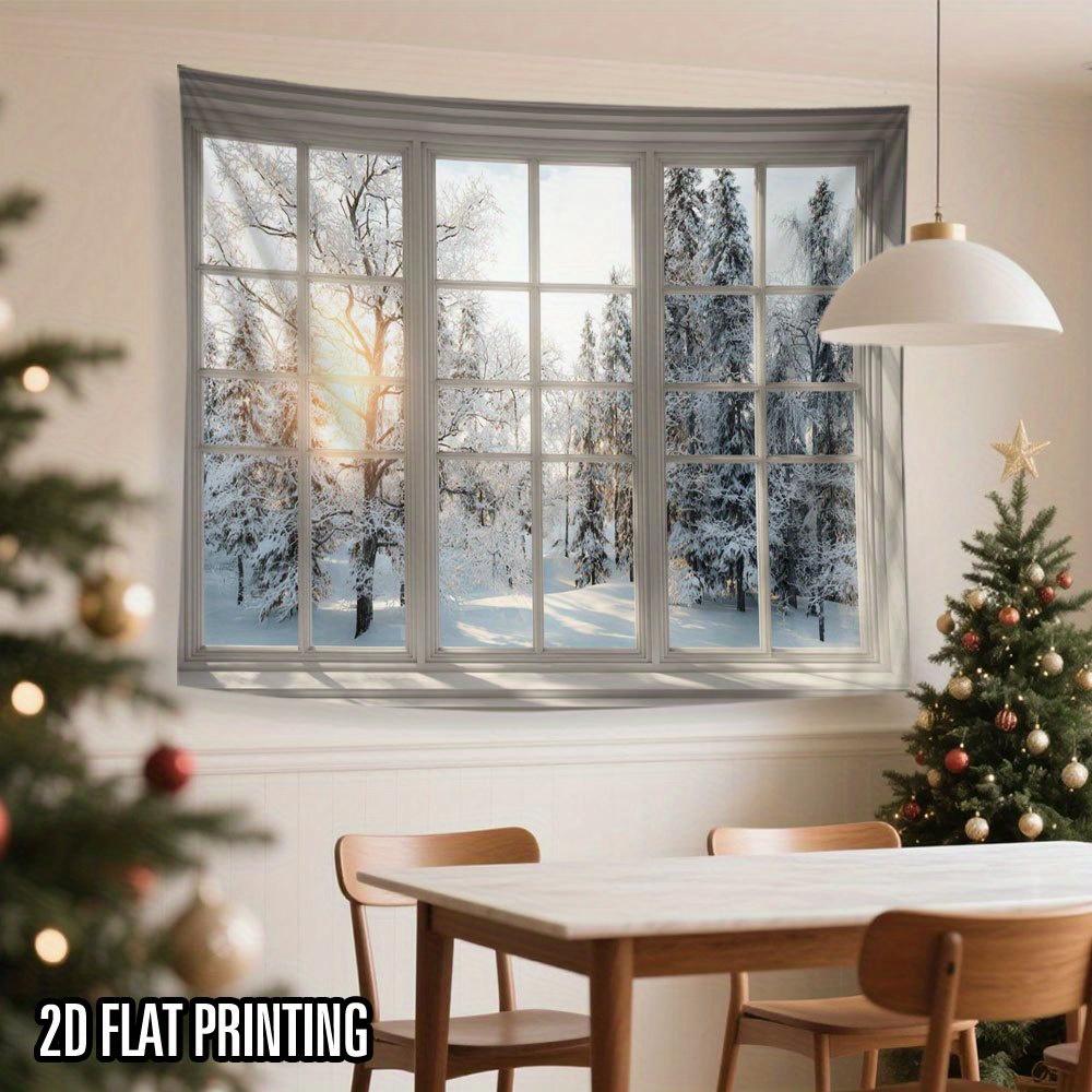 Зимний вид из окна Рождественская елка Настенный гобелен Рождественский настенный декор Елка Настенный декор Великолепная рождественская елка Камин Подарки