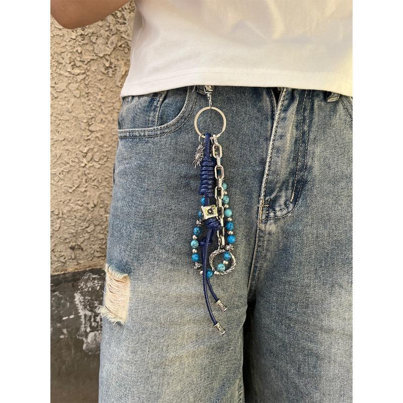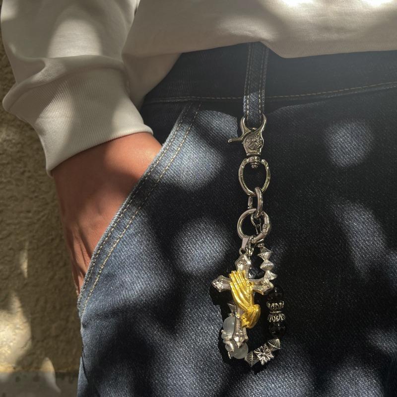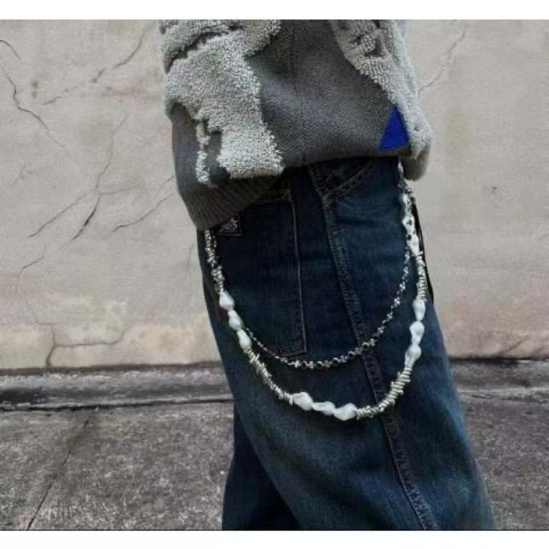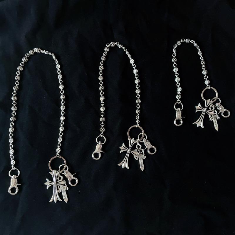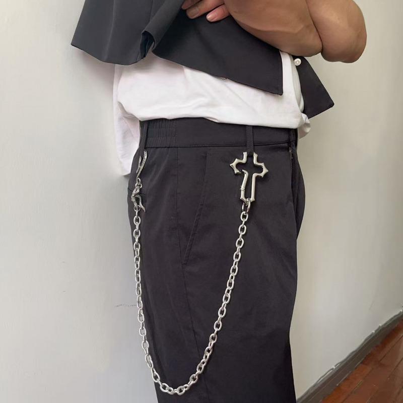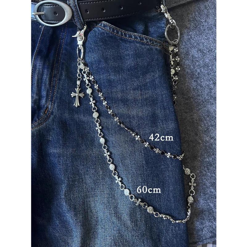 Многоэлементная цепочка для брюк, цепочка для подвешивания на сумку, цепочка на талию с крестом и круглыми бусинами в виде мечей, цепочка для джинсов с подвеской-карабином