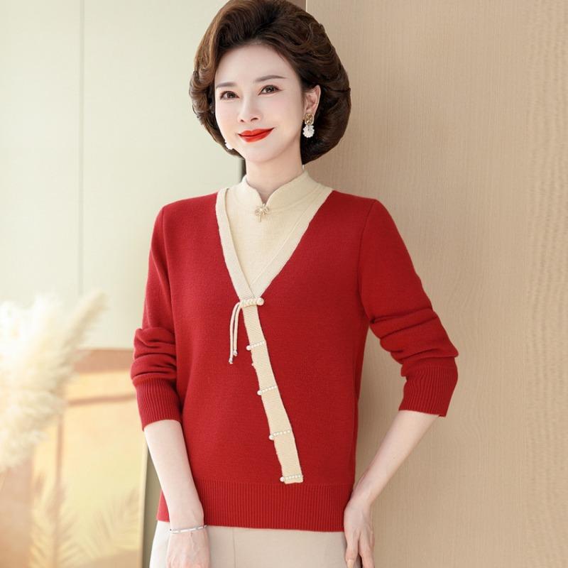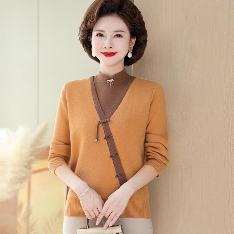 Мама осенне-зимний отпуск двухкомпонентный свитер интегрированный флис вязаная базовая рубашка новая женская одежда флис утолщенный топ