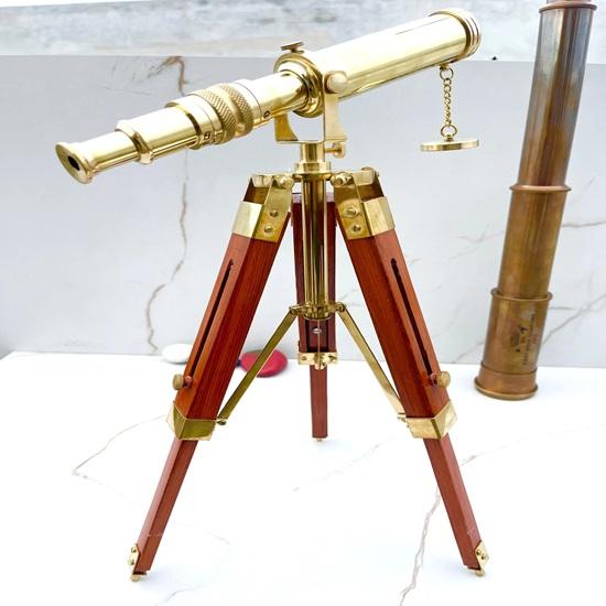 Материал: Высококачественный телескоп из цельной латуни, установленный на прочном деревянном штативе.