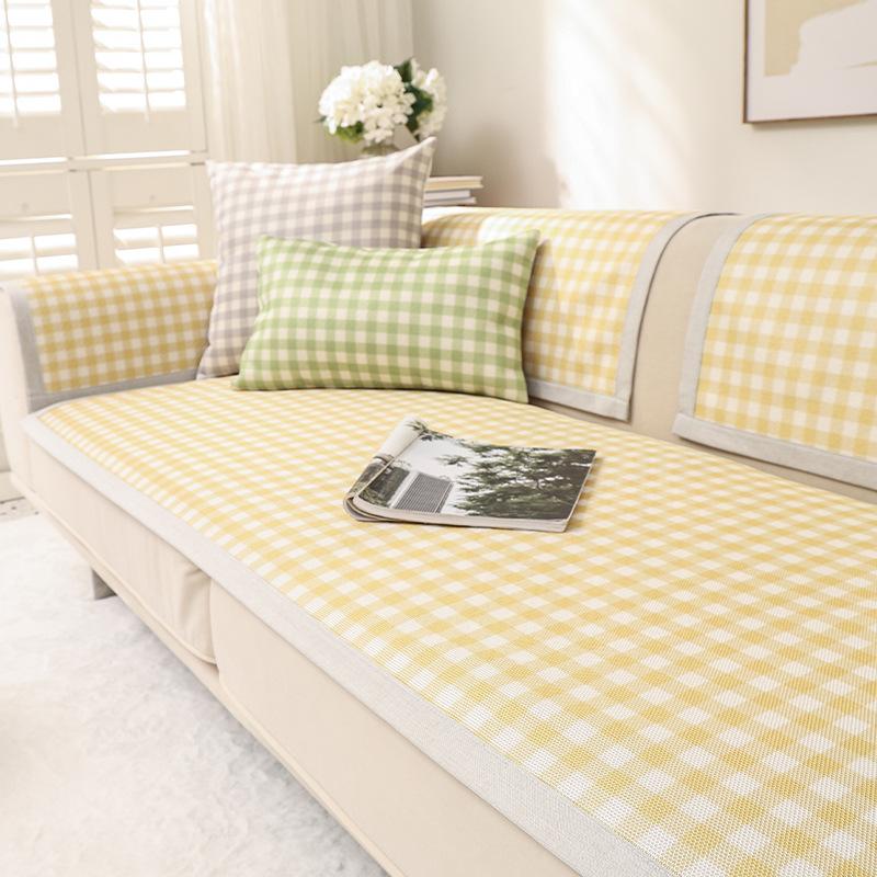 Летняя подушка для дивана, чехол для дивана, летняя ковриковая подушка, мытая ледяная шелковая нескользящая простая клетчатая универсальная диванная подушка