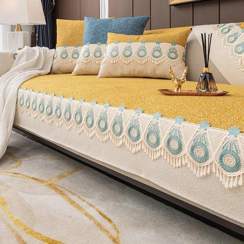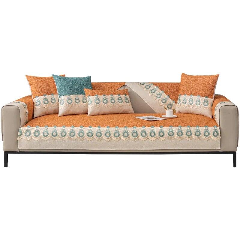 Размер диванных чехлов, которые вы выберете, должен быть на 20 ~ 30 см больше, чем фактический размер дивана. Остаточную часть можно повесить вниз, чтобы защитить боковую часть дивана или заправить под диван, чтобы предотвратить скольжение.