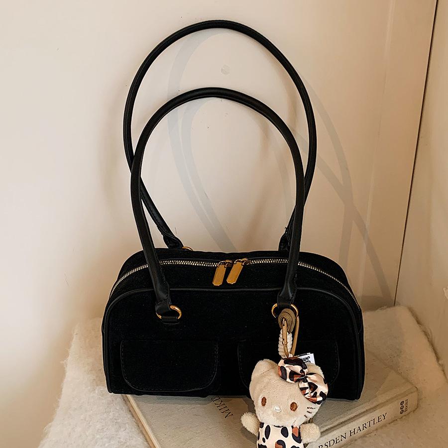 - **Детали структурированной наплечной сумки**: Имеет гладкий структурированный силуэт с отделкой из ПУ с замшевой текстурой, милый плюшевый брелок (необязательный), дизайн переднего кармана и классический плечевой ремень, излучающие винтажный и игривый шарм. Разнообразие цветов и шармов удовлетворяет разнообразным стилистическим предпочтениям.