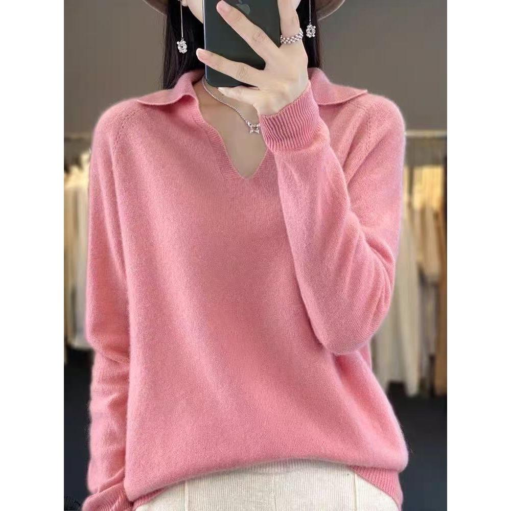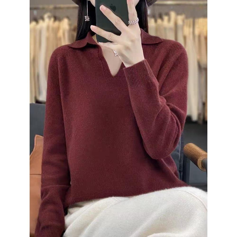 Осенне-зимний свитер ПОЛО с маленьким V-образным вырезом и длинными рукавами, свободного кроя, вязаный базовый слой для женщин