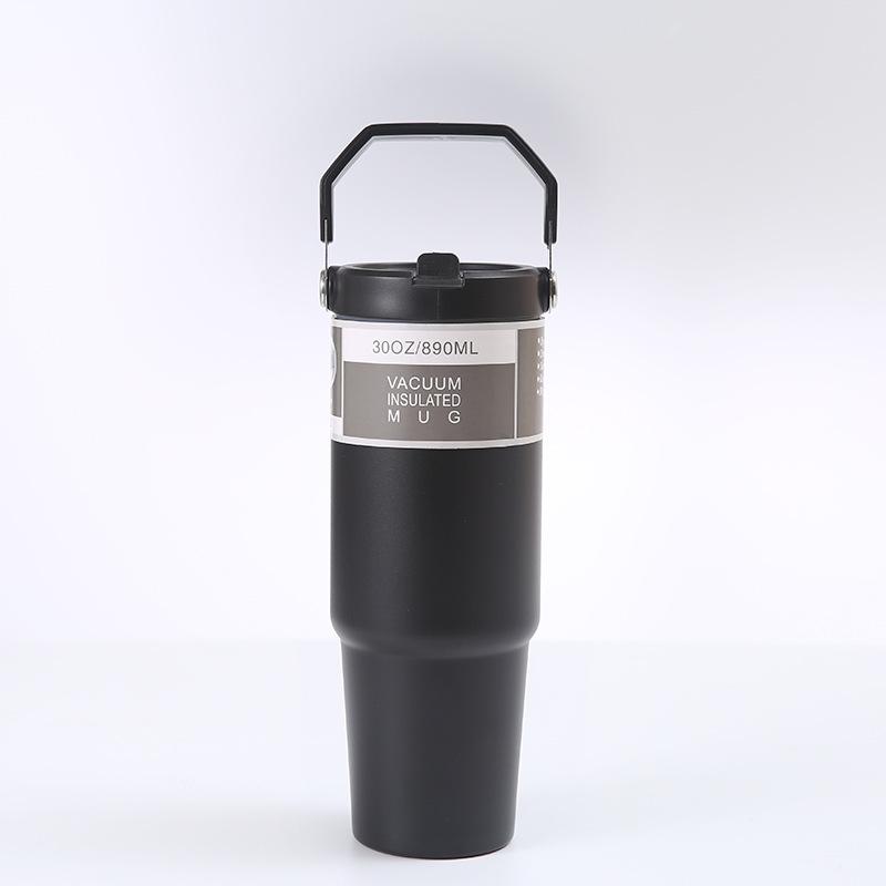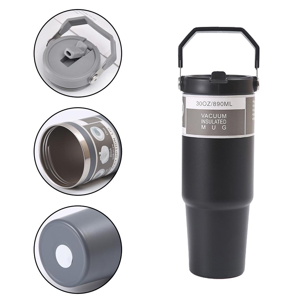 30 унций портативная автомобильная термос-кружка из нержавеющей стали с трубочкой дорожная спортивная бутылка для воды с ручкой крышка кофейный термос