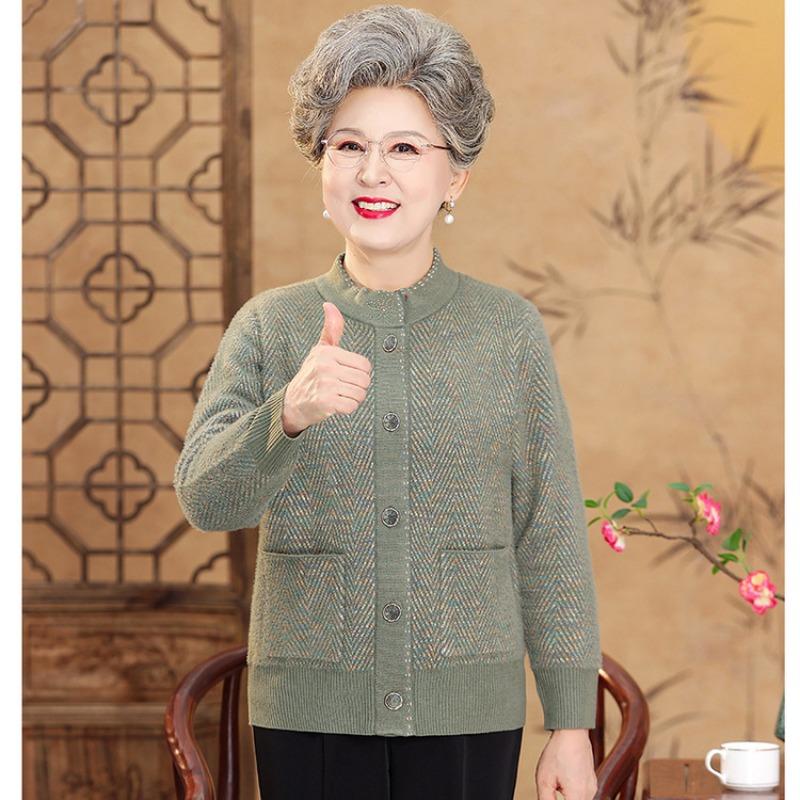 Средний Пожилой Свободный Повседневный Джемпер с Круглым Вырезом Куртка Бабушкин Свитер Кардиган Мамин Вязаный Свитер Одежда для Пожилой Женщины Женская