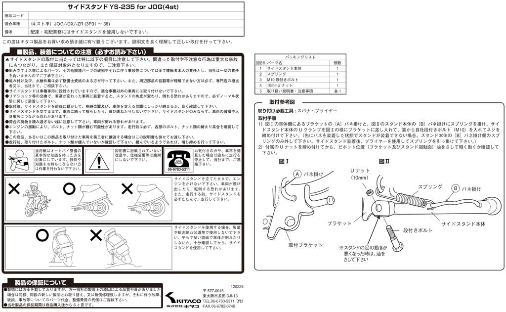 KITACO Боковая подножка ZR YS-235 (Покрытый) Jog/Jog DX/Jog (3П31~39/3Б~3Н) 656-0010235