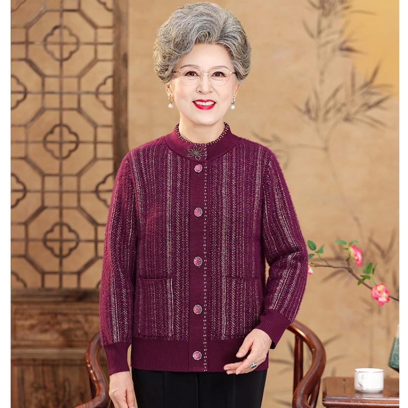 Кардиган свитер для пожилой мамы, осенний, для среднего и пожилого возраста, вязаная куртка свитер, бабушкин осенний повседневный топ
