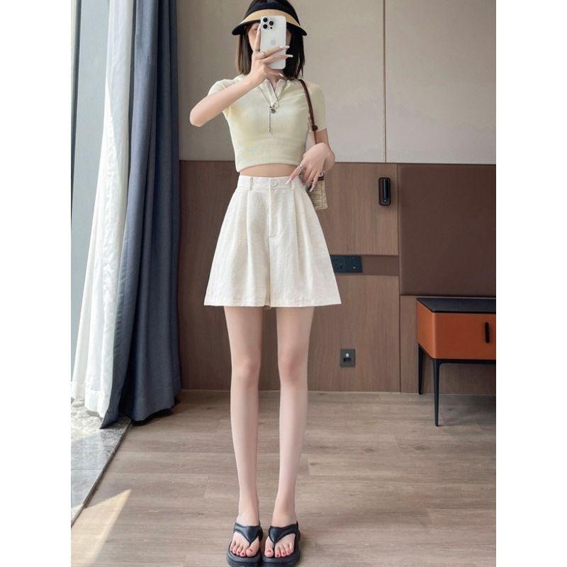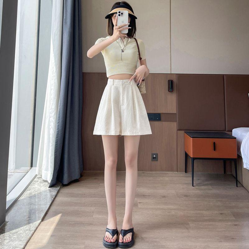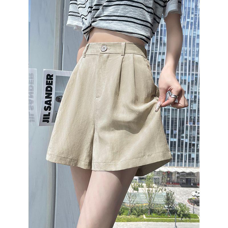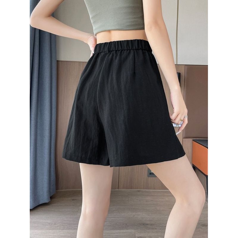 Милый Студенческий Маленький С высокой талией Ледяной шелк Лен А-силуэта Свободные Льняные Широкие Повседневные Шорты-кюлоты Брюки Ямамото