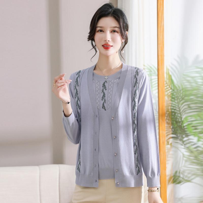 Весенне-осенние топы для женщин среднего и пожилого возраста, вязаные кардиганы больших размеров, осенняя одежда для мам среднего возраста, короткие пальто, новые модели