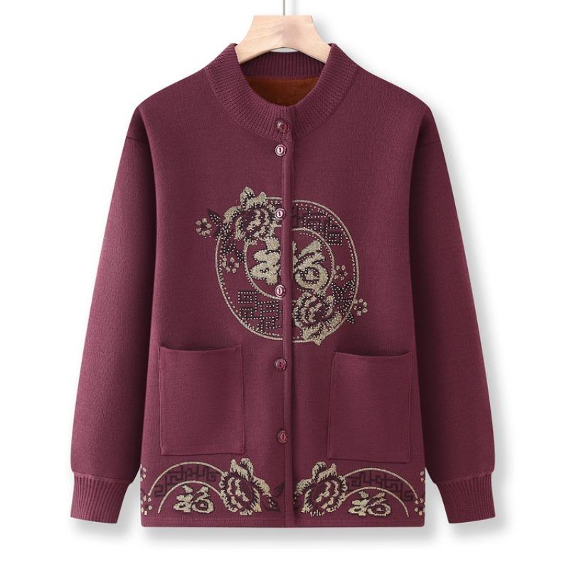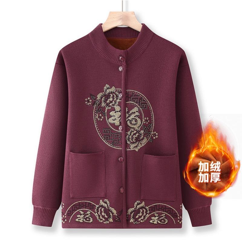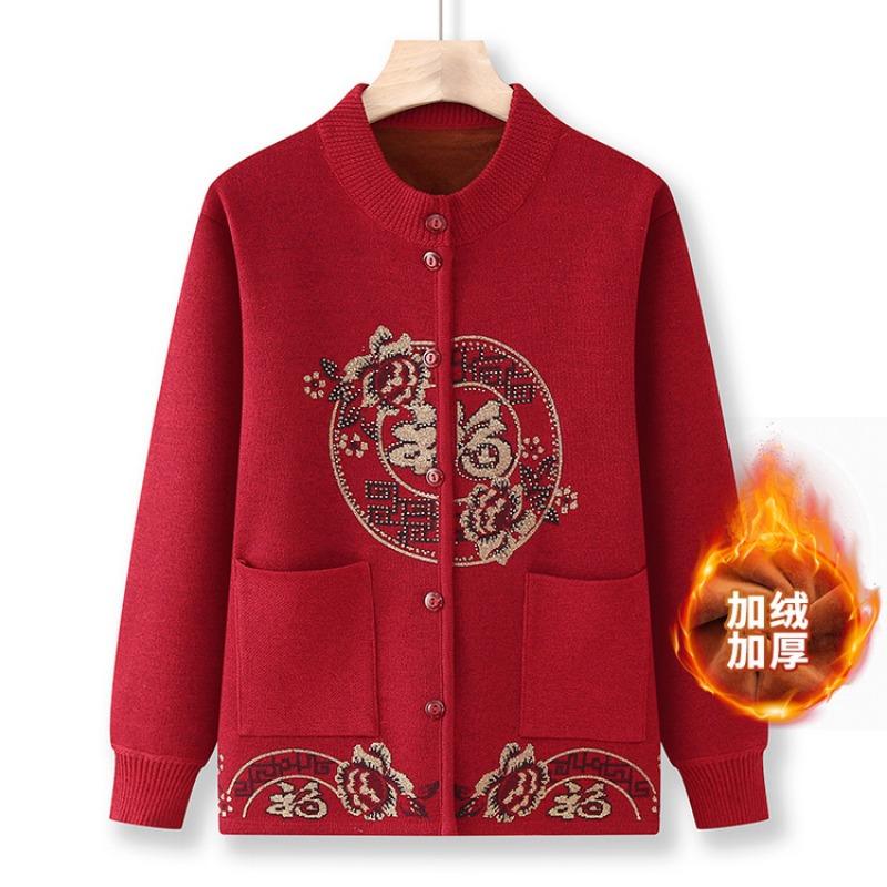 Свитер для пожилой бабушки, женская праздничная одежда Тан, вязаный кардиган, осенне-зимняя бархатная утолщенная куртка, одежда для благословения матери