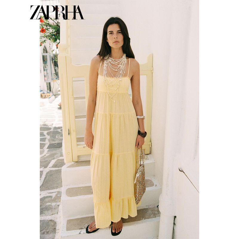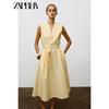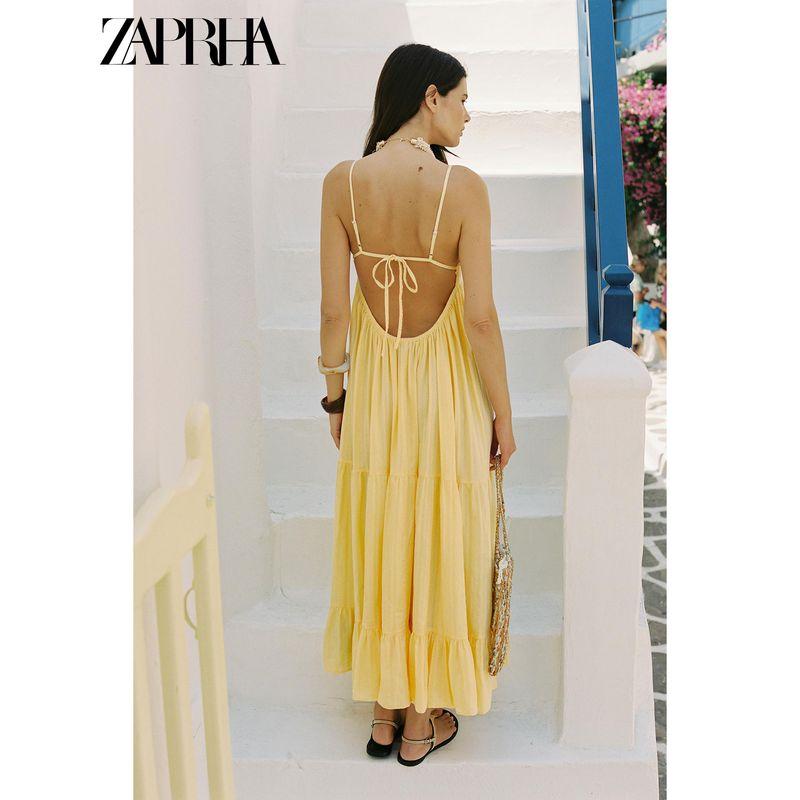 Zaprha 2025 Лето Новое Желтое Свободное Платье Пэчворк с Открытой Спиной в Стиле Морского Отдыха 8232702