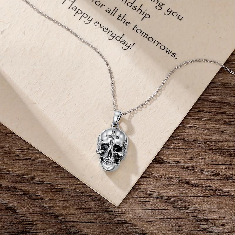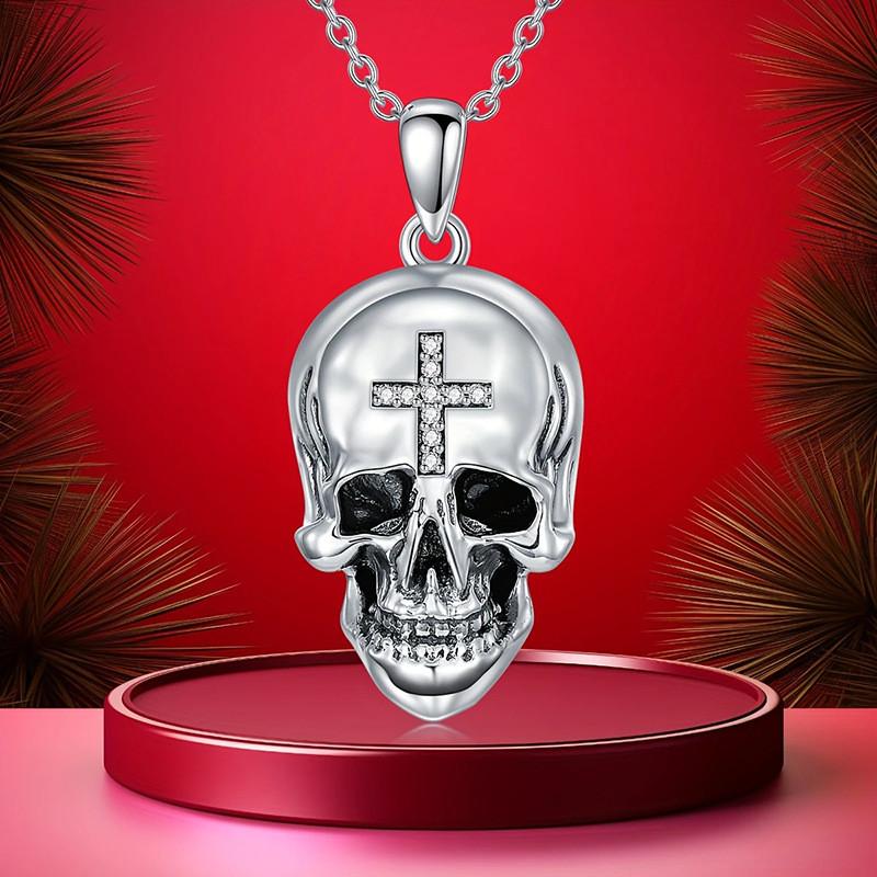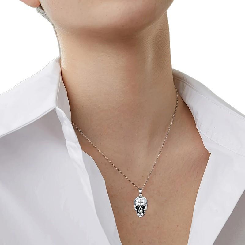 Этот кулон в готическом стиле имеет геометрический дизайн черепа и креста, изготовлен из прочного сплава и украшен встроенными стразами для дополнительной детализации. Идеально подходит для аксессуаров к костюму на Хэллоуин или для смелых модных заявлений, легко чистится влажной тканью.