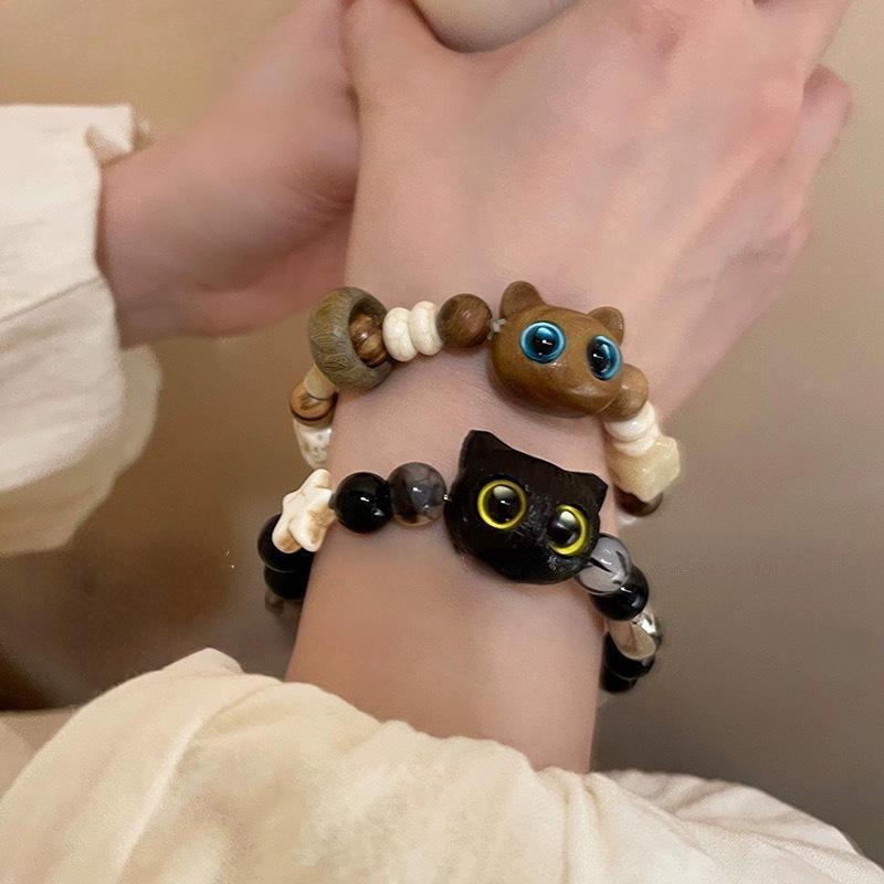 Ретро Милый Кот Браслет из Бусин Холодный Ветер Нишевый Дизайн Браслет Модный Универсальный Украшение для Подруги Женский