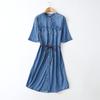 Экспорт Экспорт Ретро Выбеленное Джинсовое Платье-Рубашка с Коротким Рукавом Женское Свободное Приталенное Многокарманное на Шнуровке Тенсел Платье