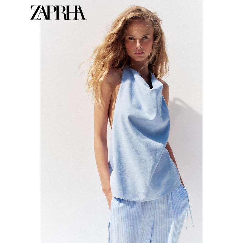 Zaprha 2025 Лето Новое Сладкий и Пряный Чистое Желание Бант Воротник-стойка Вырез на спине Топ на бретельках 6929161