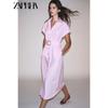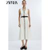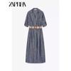 Zaprha 2025 Autumn New Simple With Belt Pleat round Neck Long sleeve Midi Dress 3897096