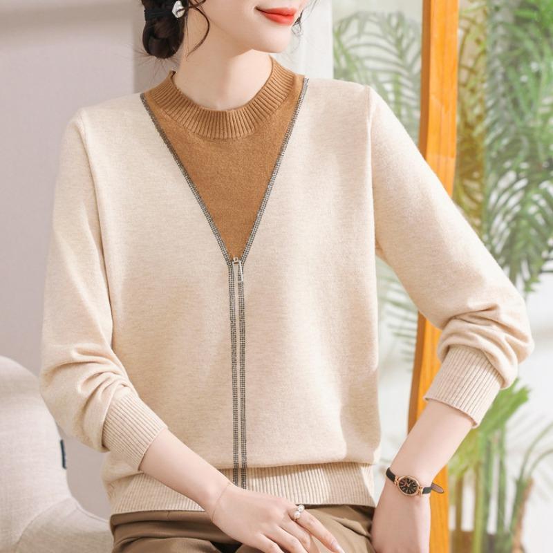 Весенний новый наряд для молодой мамы, женский вязаный свитер для женщин среднего возраста, с круглым вырезом, тонкий свитер с длинным рукавом, свободный топ для свекрови