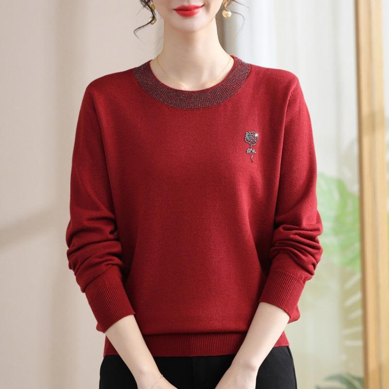 Темпераментная Мама Весенняя Рубашка Новая Мода С Длинным Рукавом Свитер Женский Среднего и Пожилого Возраста Весенне-Осенний С Круглым Вырезом Базовый Топ