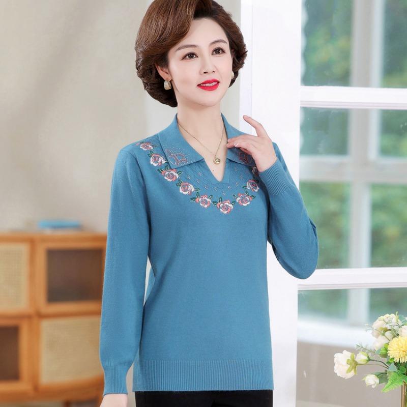 Новый китайский весенний вязаный свитер для мамы, женский повседневный, для женщин среднего и пожилого возраста, весенне-осенние топы и одежда с длинным рукавом