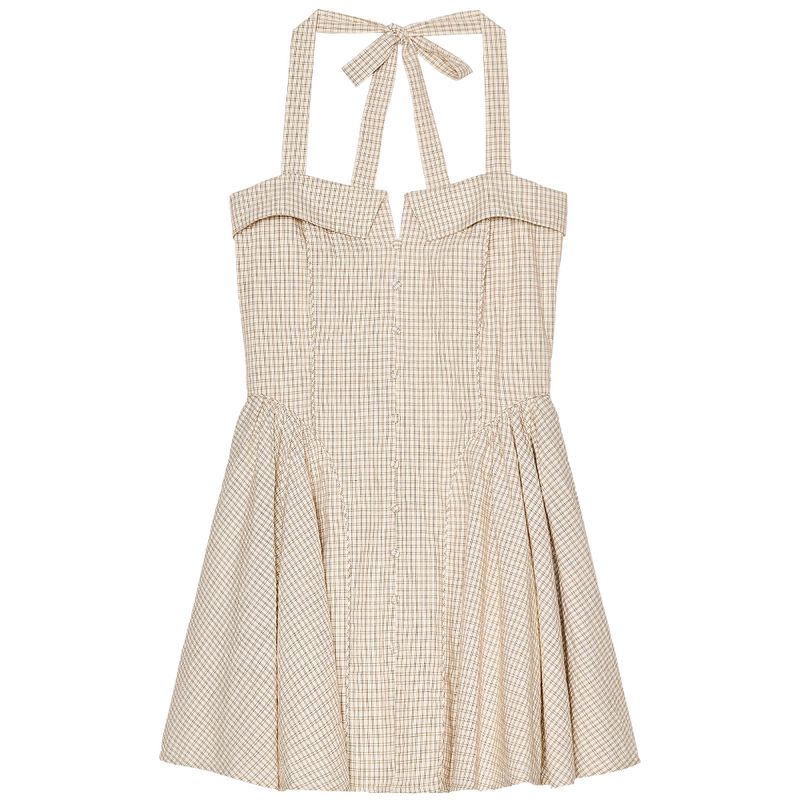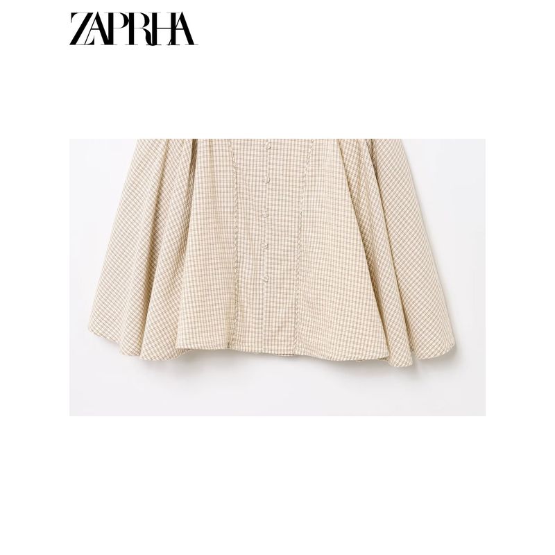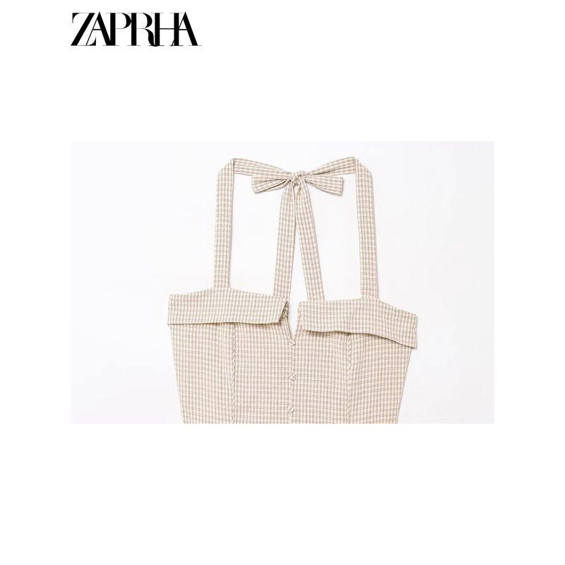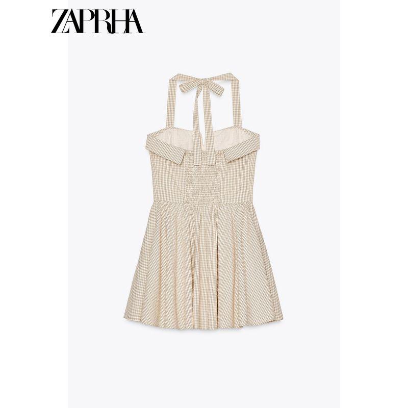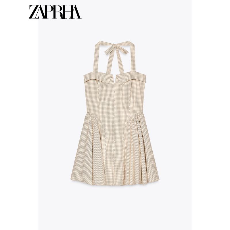 Zaprha 2025 New Arrival French Sweet First Date Silm Cotton Hanging Collar Gingham Short Dress 5107303