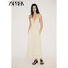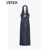 Zaprha 2025 New Arrival Cotton Embroider Hanging Collar Midi Skirt Dress Long Silm Slim Looking 2869953