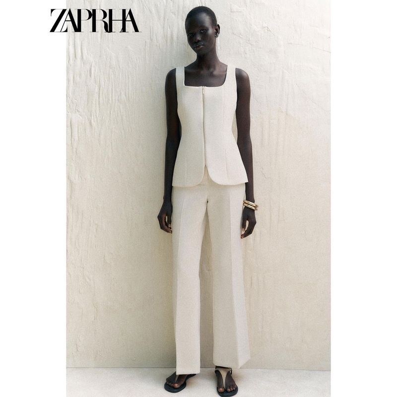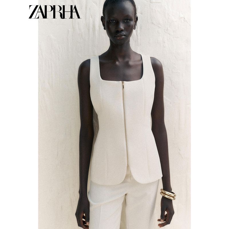 Zaprha 2025 Summer New Elegant Zip-up Corset Square Collar Sleeveless Vest Top 1478430