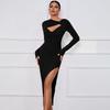 Fall New Arrival Women's Fashion Wind Chest Cut Out Kinky Silm Long Sleeves Dress Sexy High Split Elegant Dress
