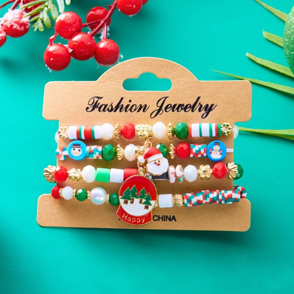 4 шт./набор рождественских елок, рождественские бусины, браслеты, Санта, рождественские украшения для девочек