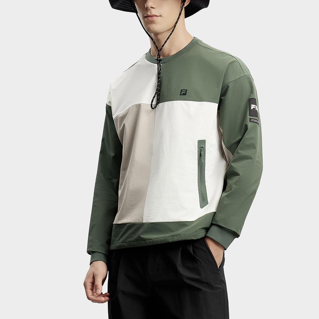 Fila Свитшот мужской спортивный пуловер колор-блок с круглым вырезом свободного кроя сибирско-зеленый A11M417203F-DG