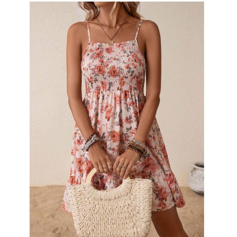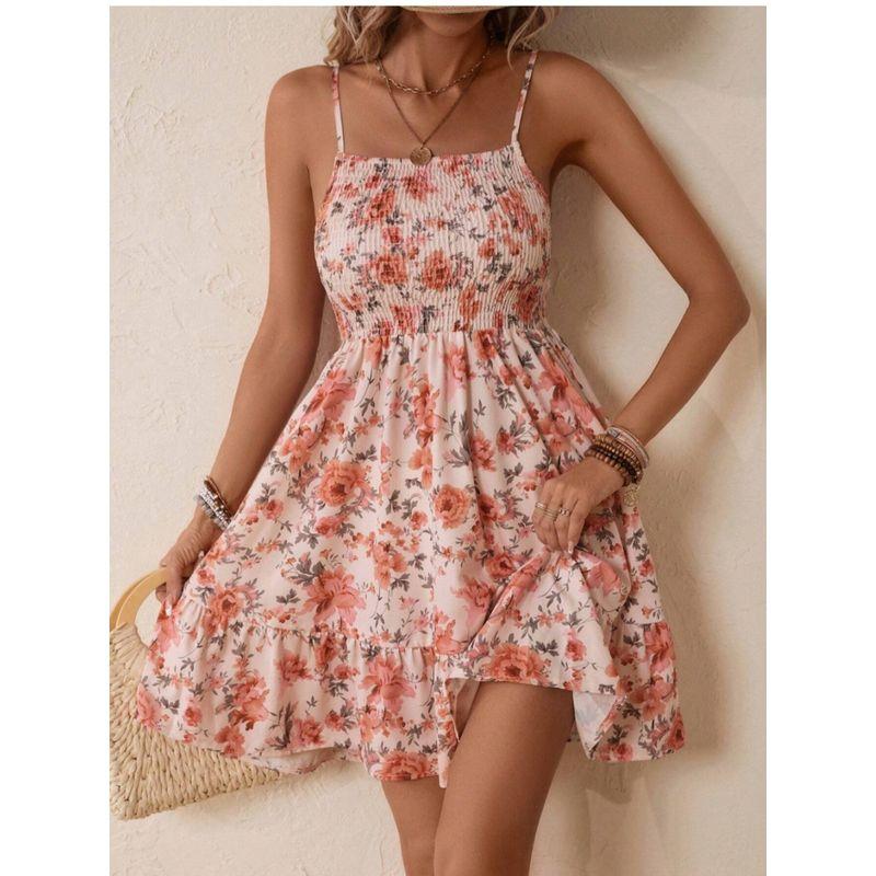 Маленькое Милое Летнее Новое Поступление Модный Стиль С Открытыми Плечами Эластичная Талия Приталенное Без Спины С Рюшами На Тонких Бретелях Платье