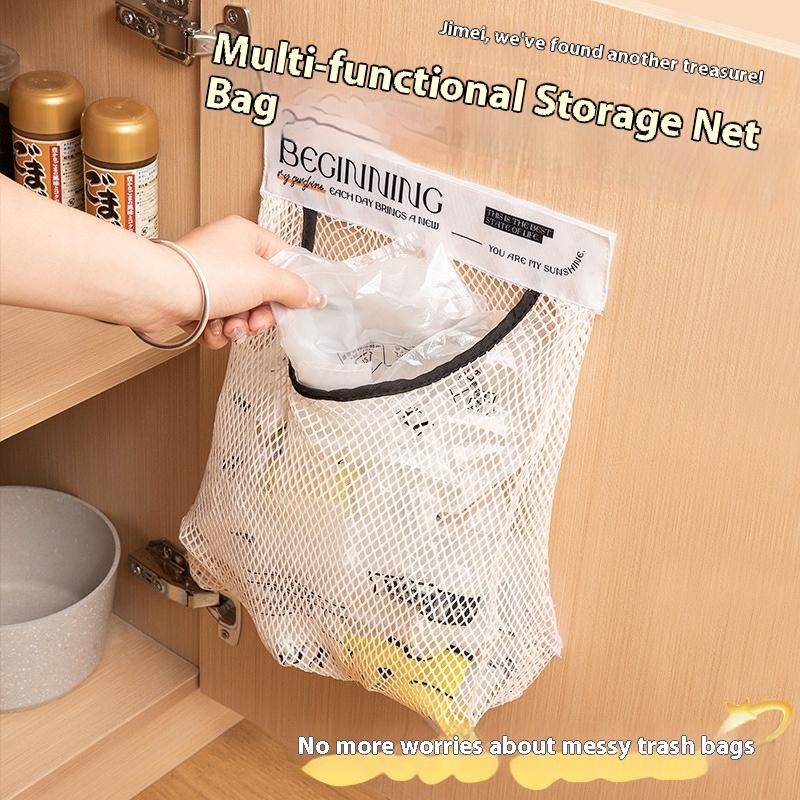 kitchen Wall Mount Mesh Storage Bag Garbage Bag Holder Plastic Shopping Bags Dispenser Sundries Bag Plastic Wrap, Shopping Bag