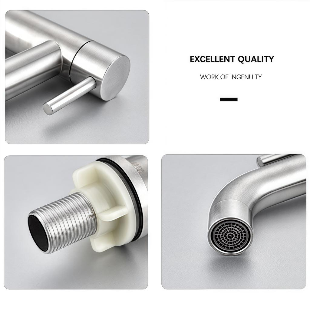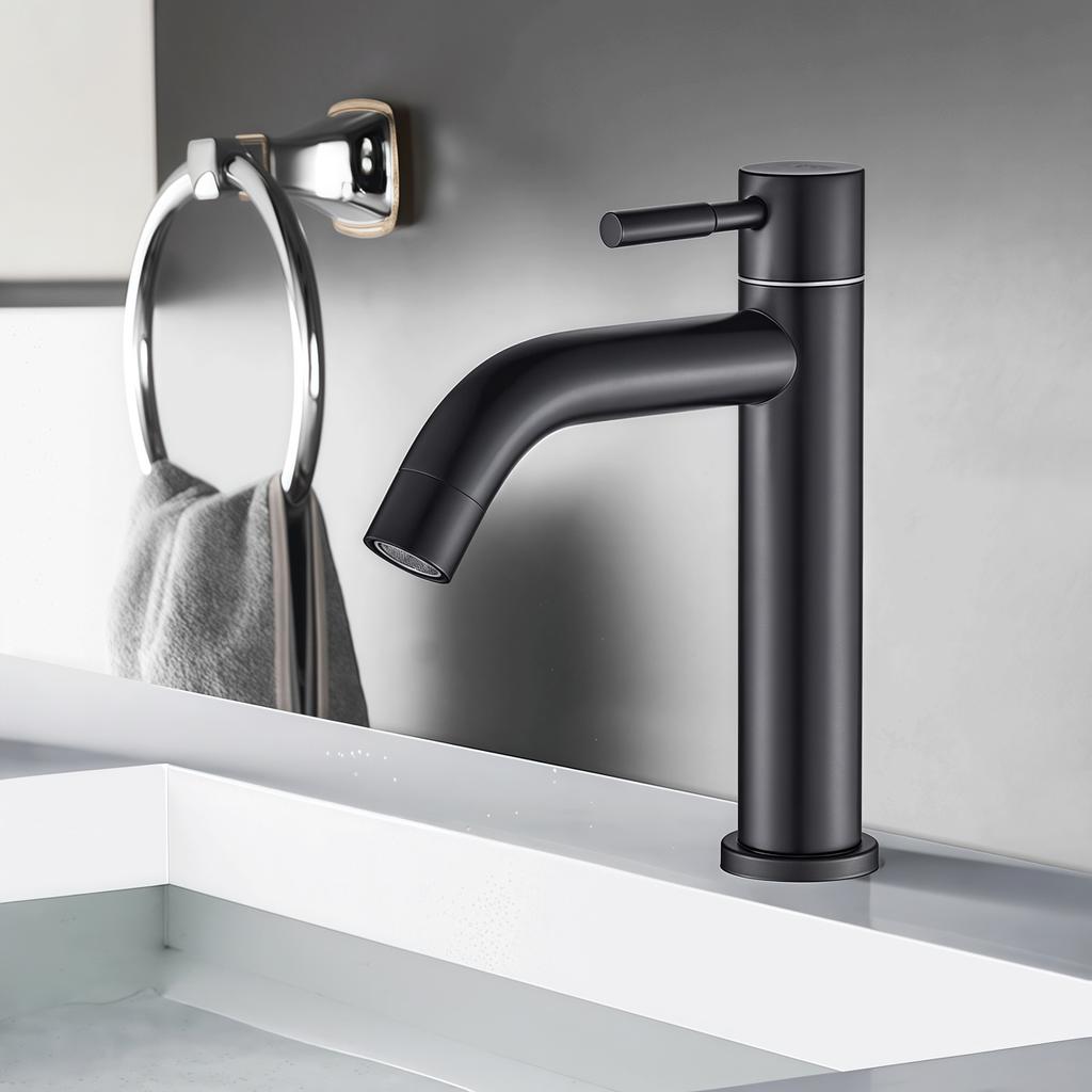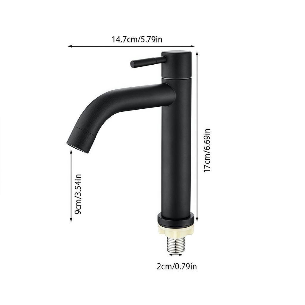 Кран для холодной воды из нержавеющей стали 304, черный/серебристый цвет, монтируемый на столешницу, удлиненный и высокий, для раковины, кухни, ванной комнаты