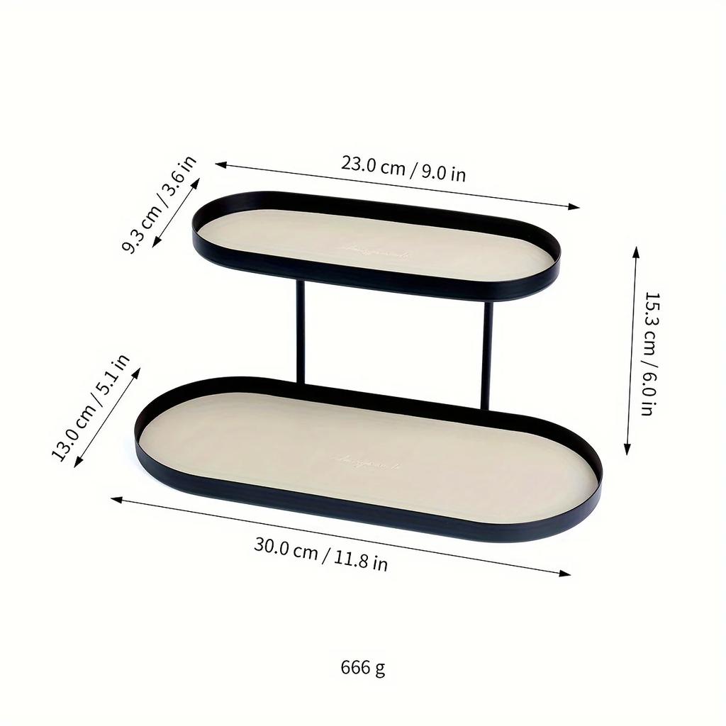 Парфюмерная двухъярусная овальная металлическая витрина, стеллаж для хранения, универсальный органайзер для косметики, ювелирных изделий, ключей, для гостиной, ванной комнаты