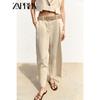 Zaprha 2025 Summer New Loose Linen Blend Balloon Style Striped Pants Women Loose Feeling 3564530