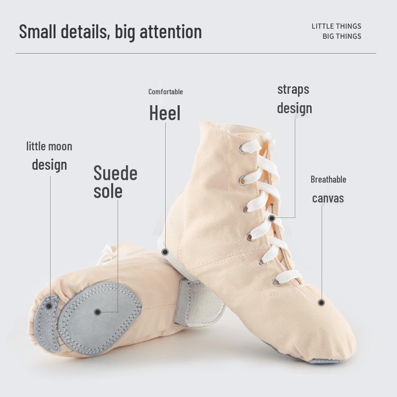 Откройте для себя идеальное сочетание комфорта и стиля с этими танцевальными туфлями, разработанными как для взрослых, так и для детей.. Изготовленные из прочного парусинового верха, они обеспечивают гибкость и воздухопроницаемость, необходимые для танцев.. Подошва из коровьей кожи обеспечивает отличное сцепление и плавность движений, что делает их идеальными для джазовых и балетных выступлений.. Независимо от того, тренируетесь ли вы в студии или выступаете на сцене, эти кроссовки с высоким верхом обеспечивают поддержку и универсальность, необходимые для достижения превосходных результатов.