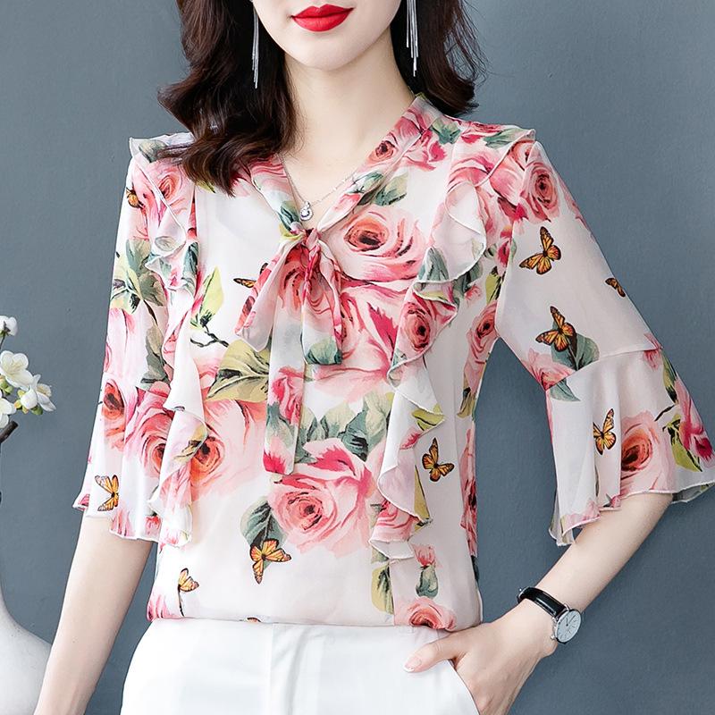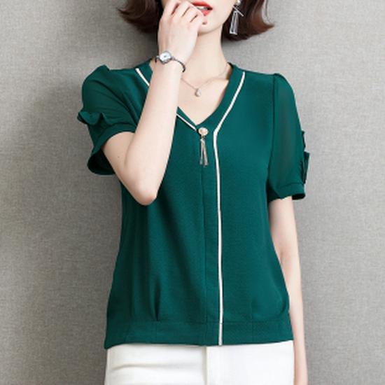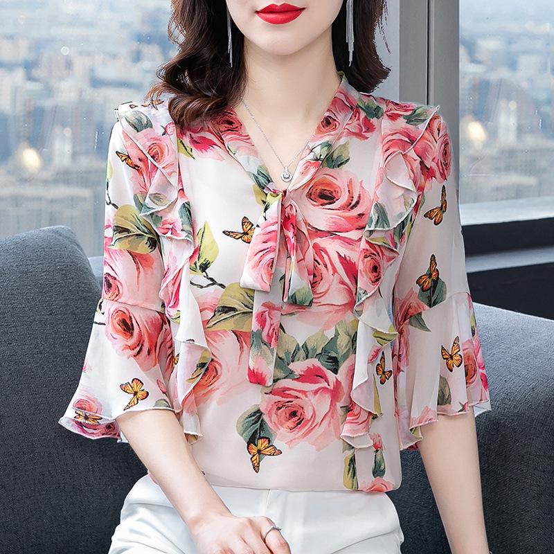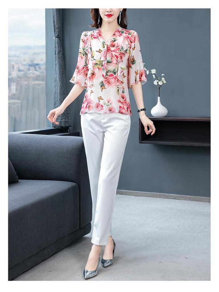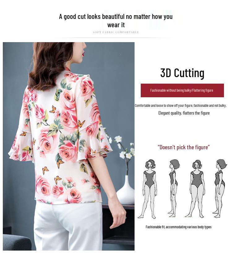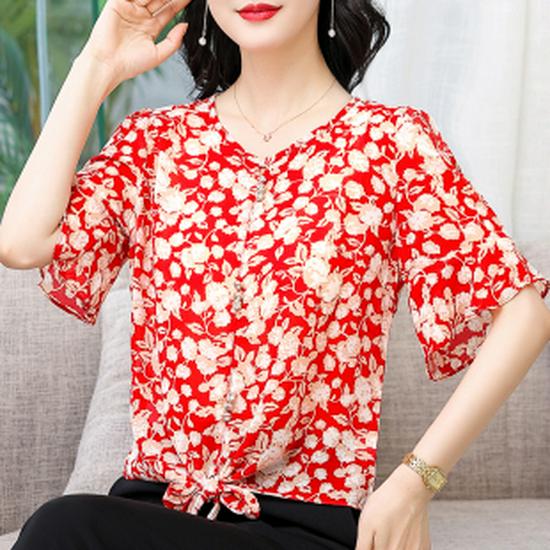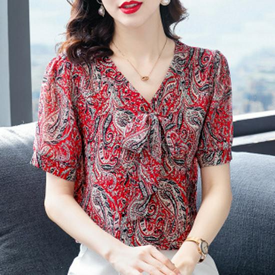 Пополните свой гардероб этим изысканным шифоновым топом, созданным для женщин, стремящихся к стройному и молодому стилю.. Этот топ, изготовленный из высококачественного шифона, украшен очаровательным цветочным узором, который добавляет нотку элегантности вашему образу.. Короткие рукава и свободный крой обеспечивают комфорт и свободу движений, а V-образный вырез подчеркивает вашу естественную красоту.. Украшенное изысканным принтом, это стильное изделие идеально подходит для различных случаев, сочетая в себе изысканность с ощущением непринужденности.