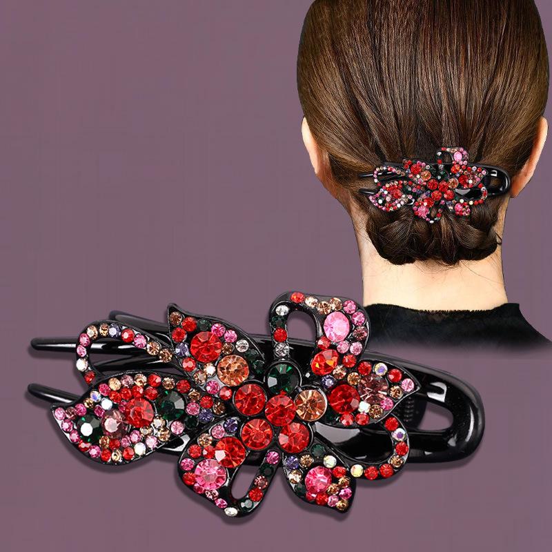 Корейская ретро заколка-краб со стразами - Большая в стиле «утиный клюв» для прически «пучок»
