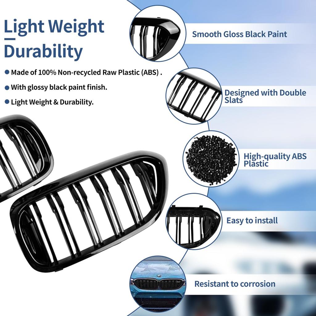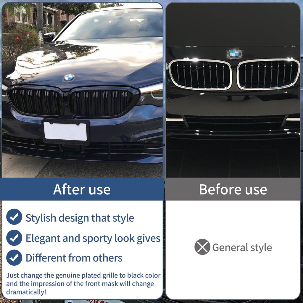 Zealhot Передние ноздри, совместимые с BMW 5 серии 550i, черная решетка радиатора, G30, G31, G38, 525i, 530i, 540i, (2018-2020), (глянцевый (двойной))