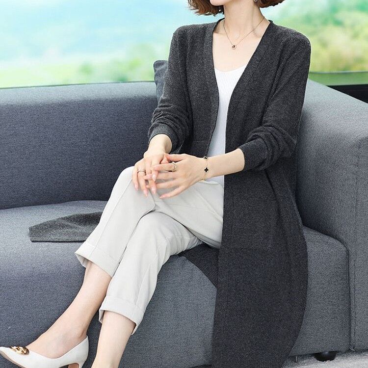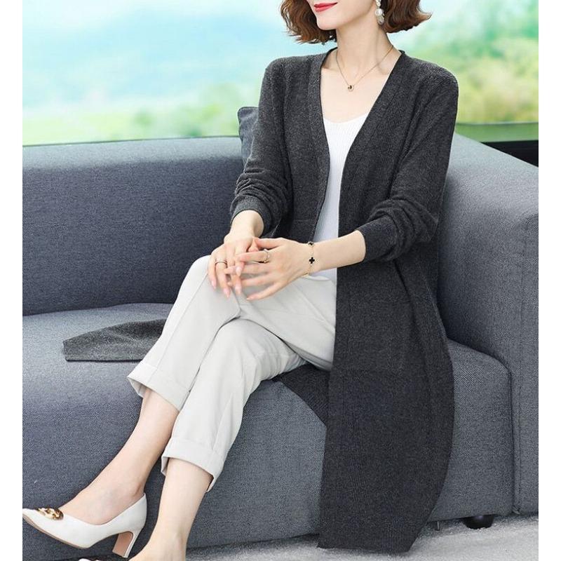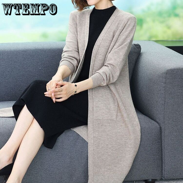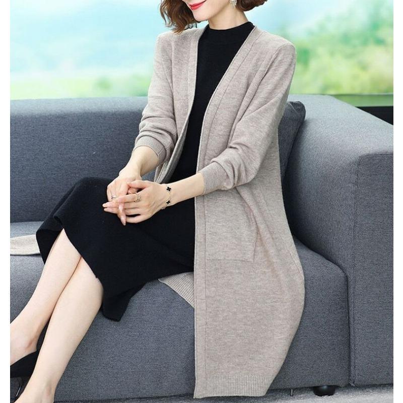 Весенне-осенний свободный свитер большого размера, верхняя одежда, пальто-свитер, женский вязаный кардиган, женский удлиненный стиль