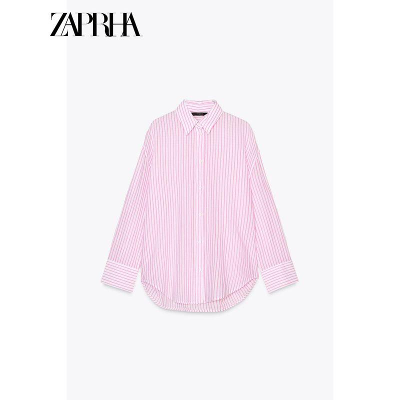 Zaprha 2025 Summer New Arrival Super Nice Loose Cotton Stripes Loose Lapels Shirt for Women 7521078