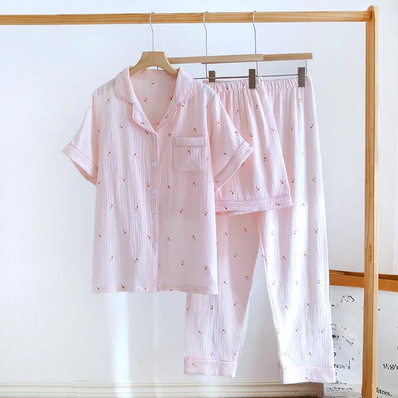 Хлопковая женская пижама с принтом, короткий рукав, комплект из 3 предметов, домашняя одежда весна-лето, ночная рубашка, женская одежда для сна, одежда для сна